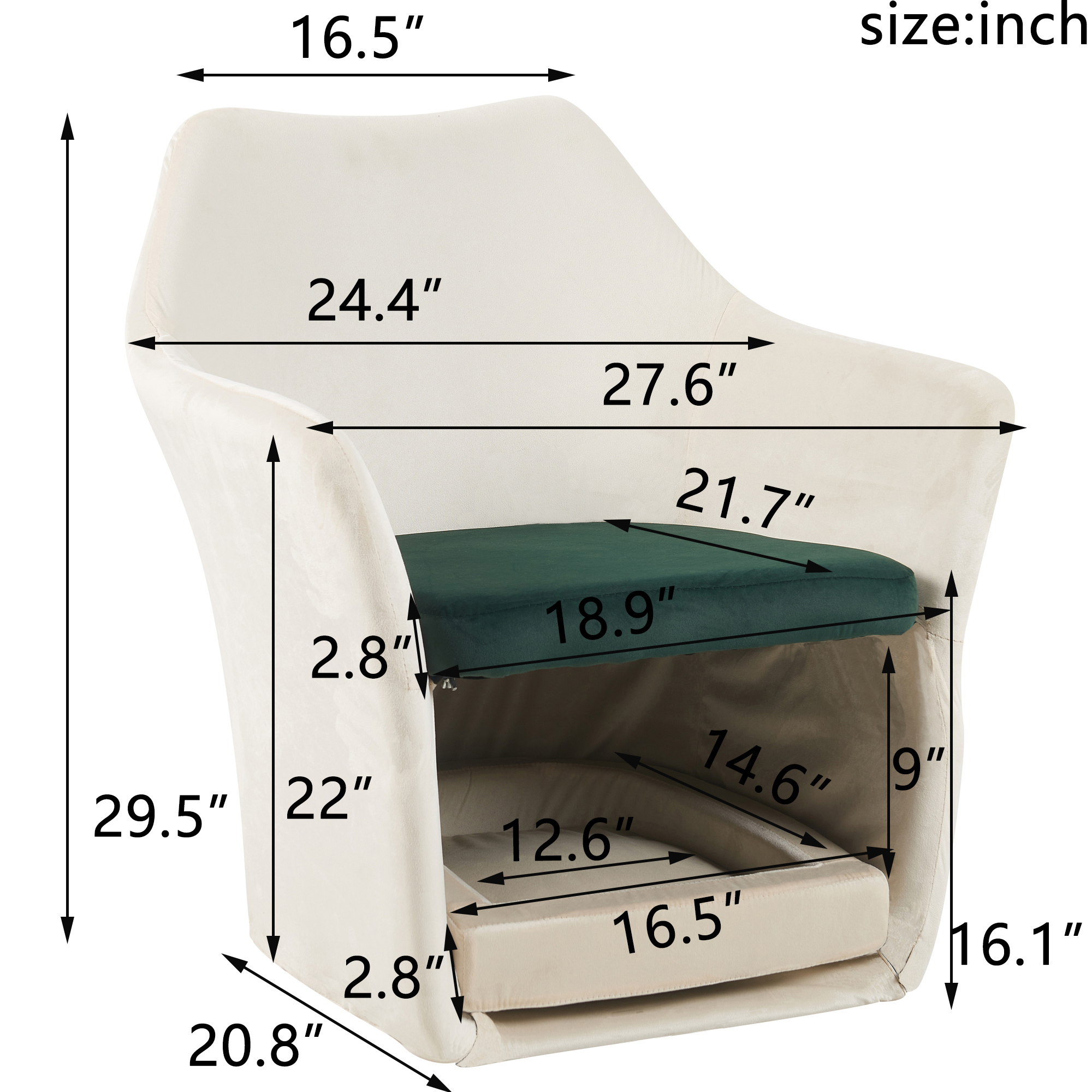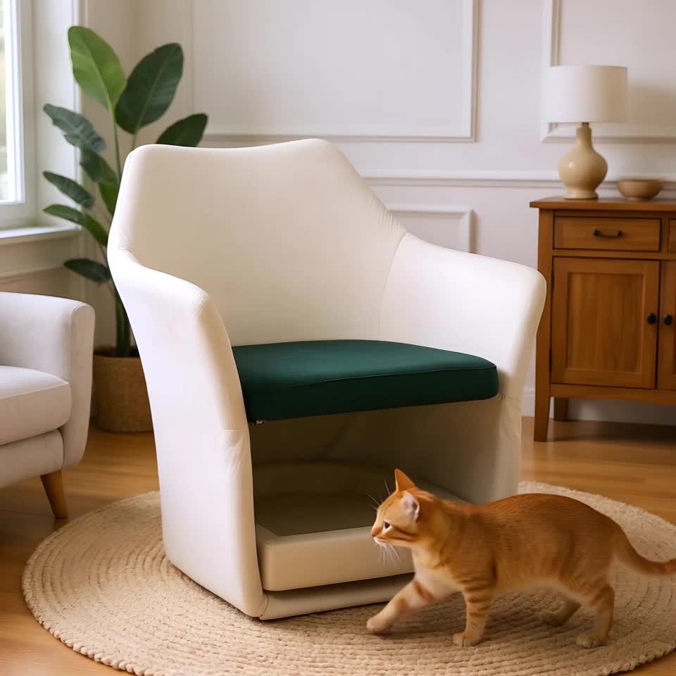 This pet-friendly seat is a thoughtful design crafted for pet-owning families. The main body of the seat features a soft white exterior paired with a dark green cushion, boasting a simple yet elegant style that effortlessly blends into various home decor styles. Its unique double-layer structure includes an upper layer designed for people to sit comfortably, with a soft cushion providing a cozy seating experience; the lower layer is cleverly set as an exclusive space for pets, offering a private and safe little corner for your furry friends. Whether you're reading or resting on the seat, or your pet is quietly accompanying you from the lower layer, it allows both humans and pets to share warm moments, perfectly balancing home aesthetics with the needs of pet-owning life. It is an excellent choice to enhance the happiness of pet-owning families.