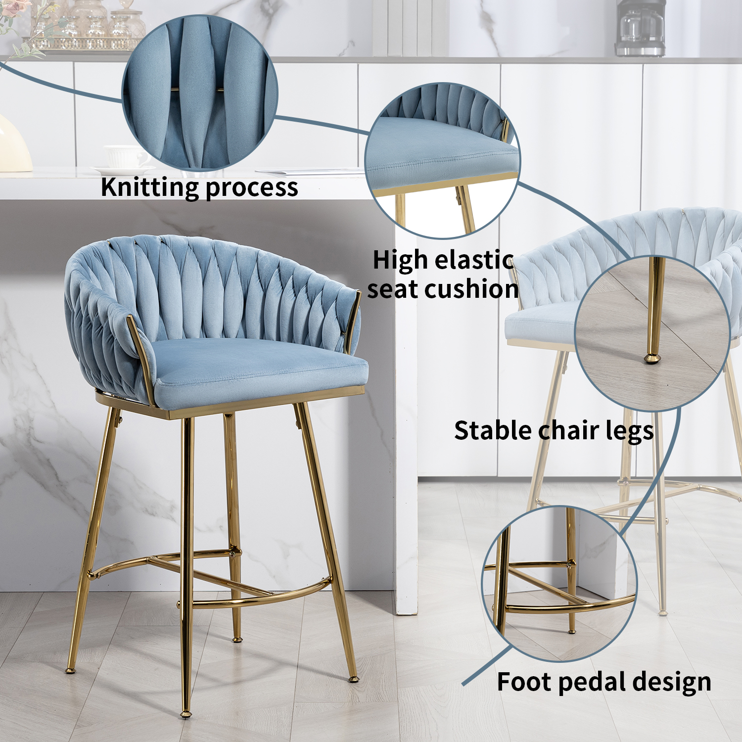 Thoughtful Design Details:Features a delicate knitting process, a high - elastic seat cushion for comfort, stable chair legs for support, and a foot pedal design for added convenience.