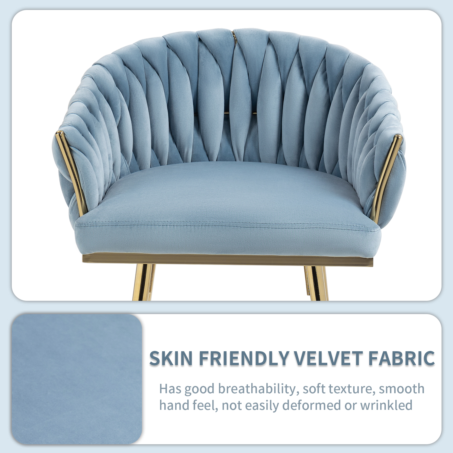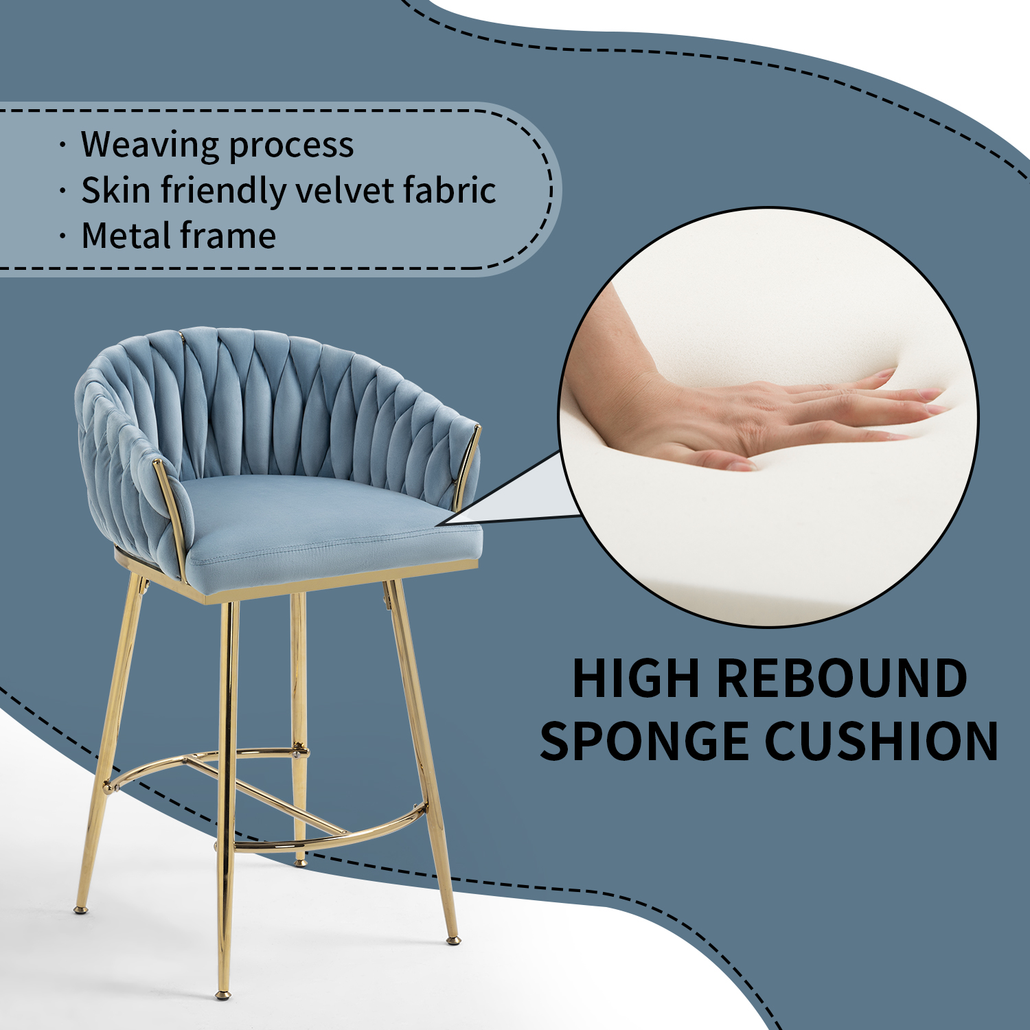 High - Quality Construction:Combines a weaving process, skin - friendly velvet fabric, and a sturdy metal frame. The seat is filled with high - rebound sponge, ensuring both comfort and durability.
